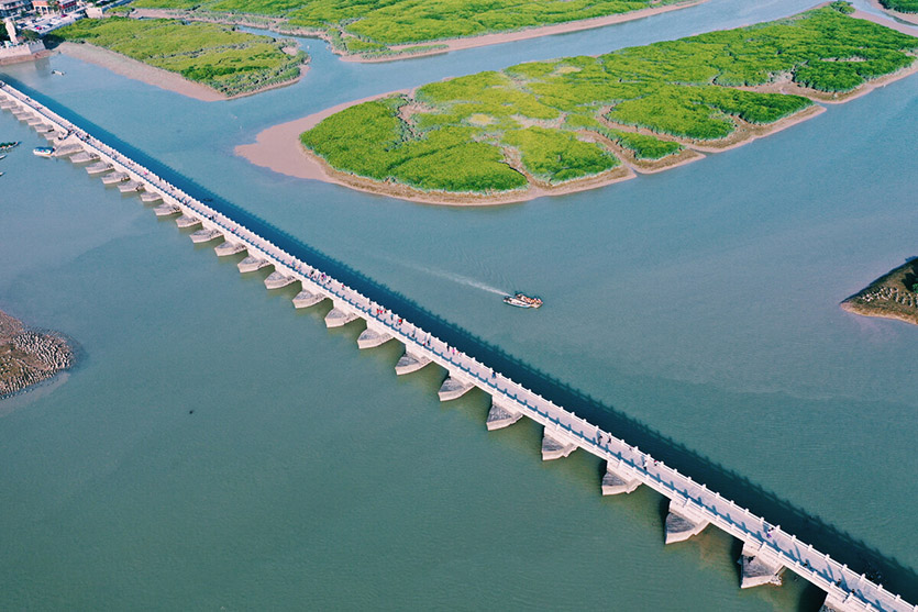 何以見得呢?因為它創(chuàng)造了多個世界第一:世界第一座跨海大橋、世界第一座采用浮運架梁技術(shù)架設(shè)的橋梁、世界第一座采用生物固礎(chǔ)的橋梁、世界第一座采用筏形基礎(chǔ)的橋梁。